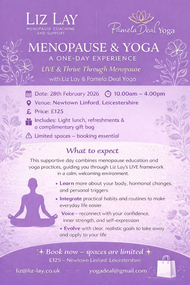 Join Liz (Certified Menopause Coach) and myself our Yoga & Menopause Coaching day this February!