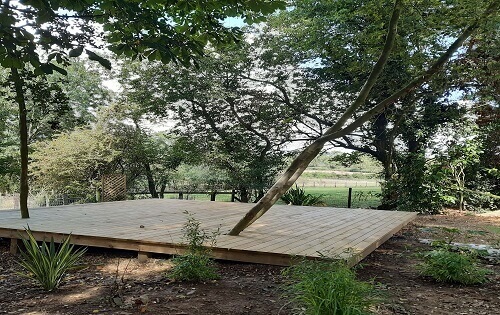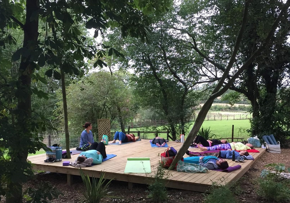 - An hour of yoga: with focused breathing, flowing sequences and relaxation, on a purpose build wooden platform nestled under trees in a rural location